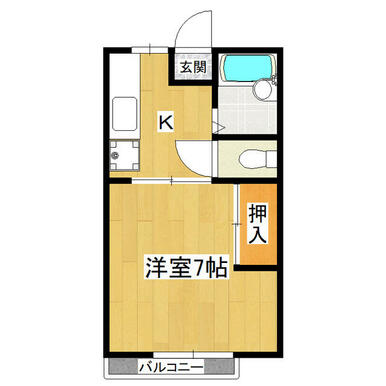| 間取り | 1K(K3 洋7) | 主要採光面 | 南 |